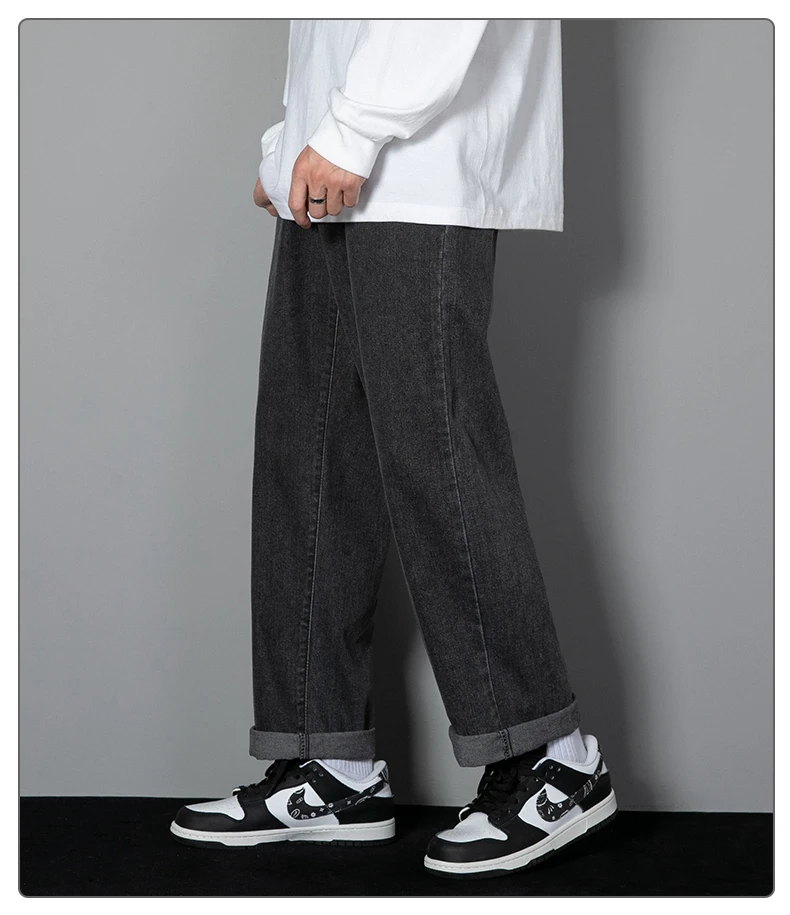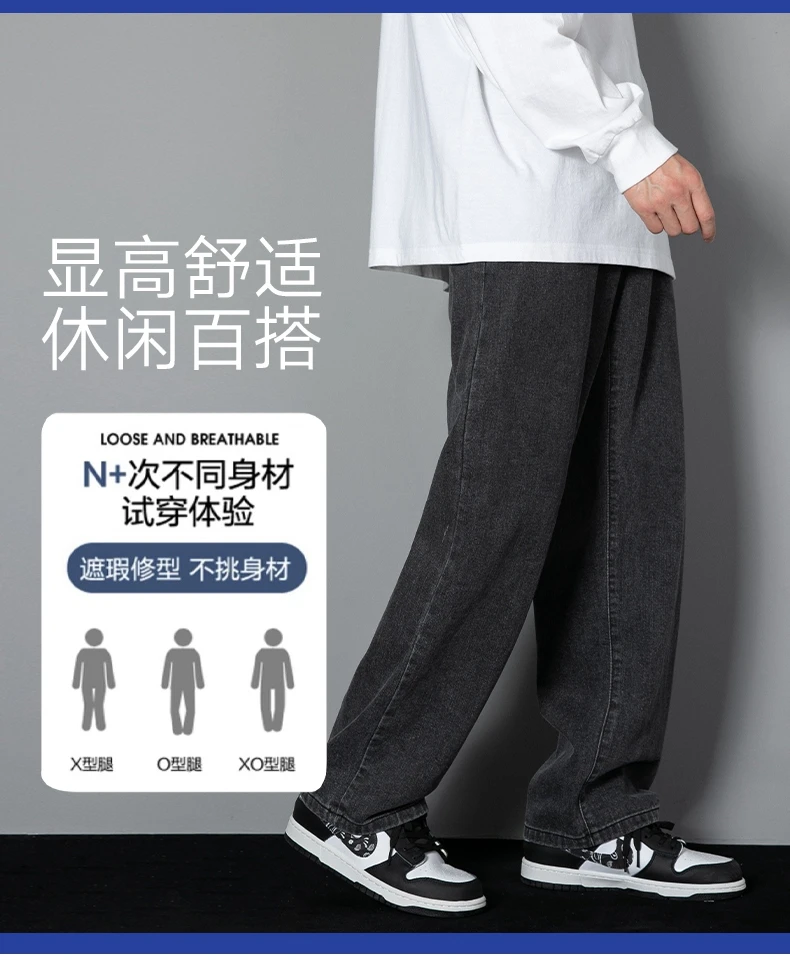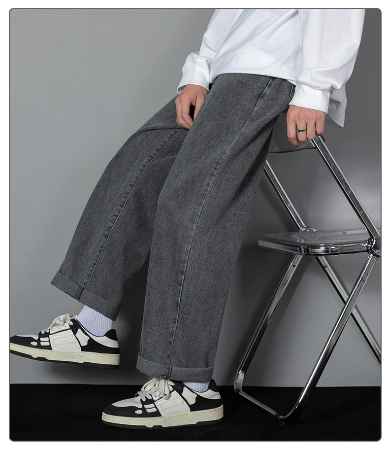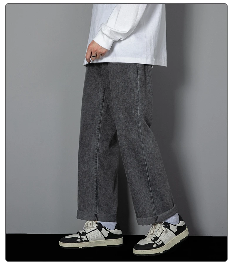 Long informal jeans for men new Korean for 2023 straight jeans for men from denim fabric with wide legs, black, light gray, black 3xl color