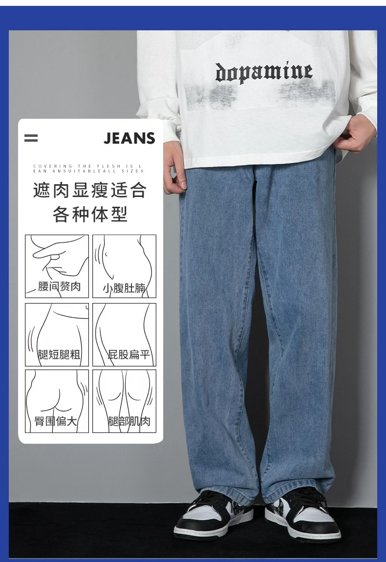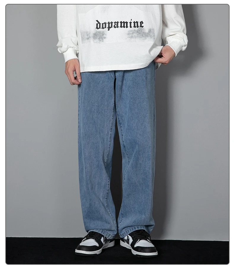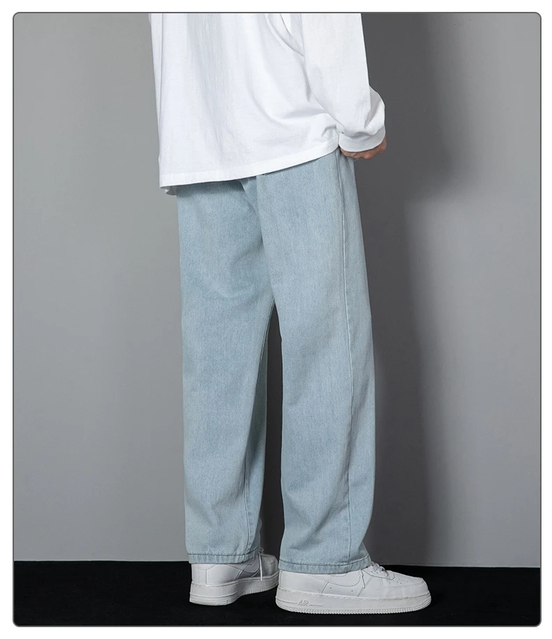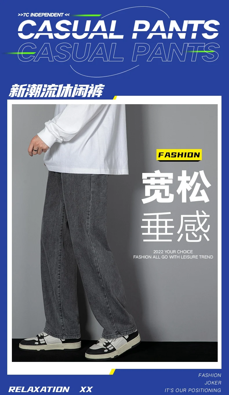 Long informal jeans for men new Korean for 2023 straight jeans for men from denim fabric with wide legs, black, light gray, black 3xl color